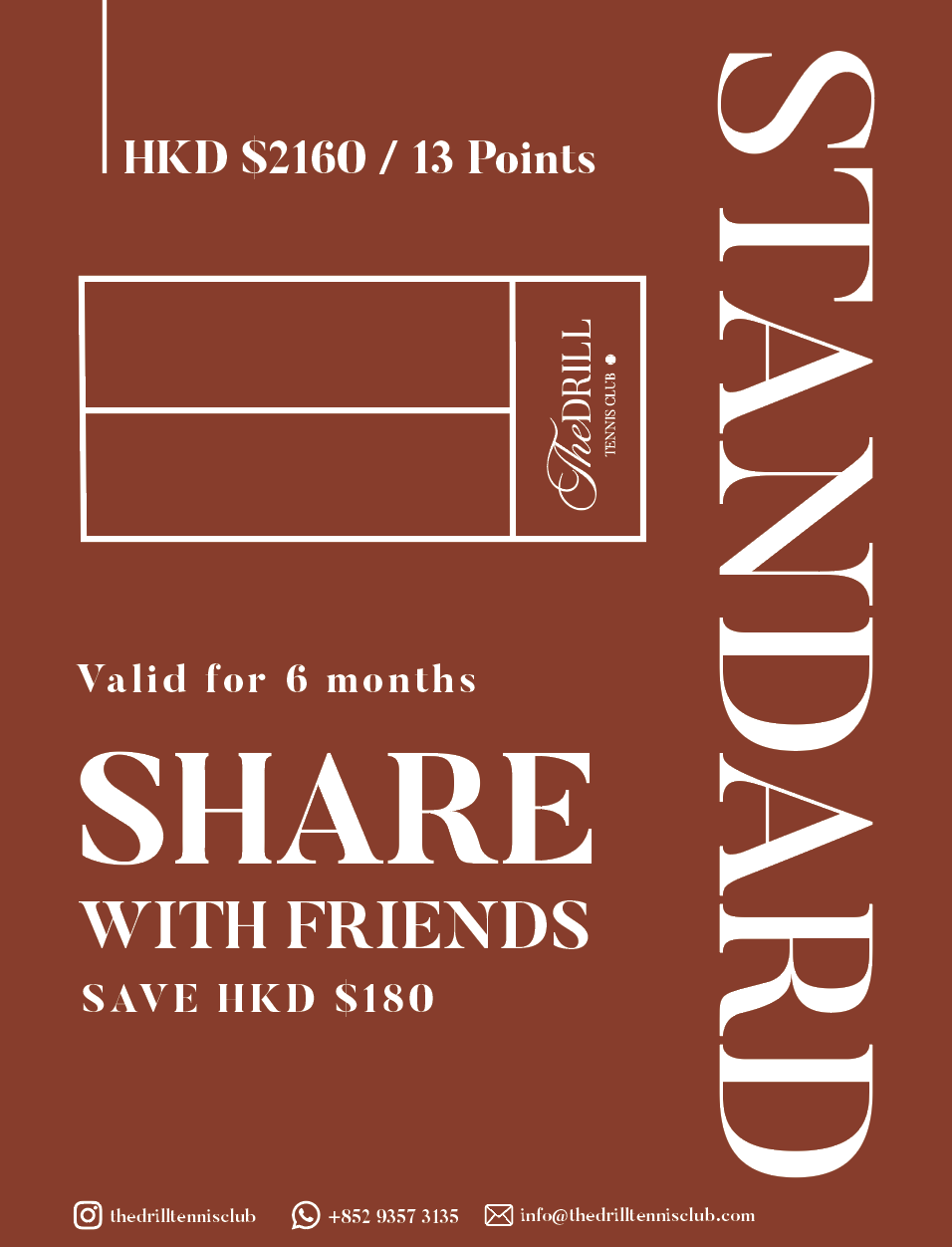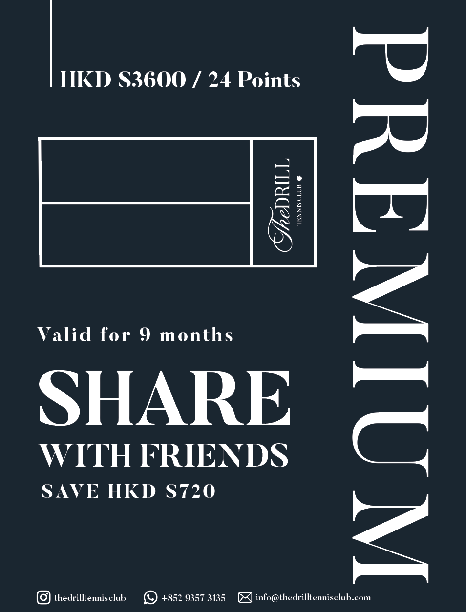 If fail to notify us in time, The Drill Tennis will charge the same-day booking fee.