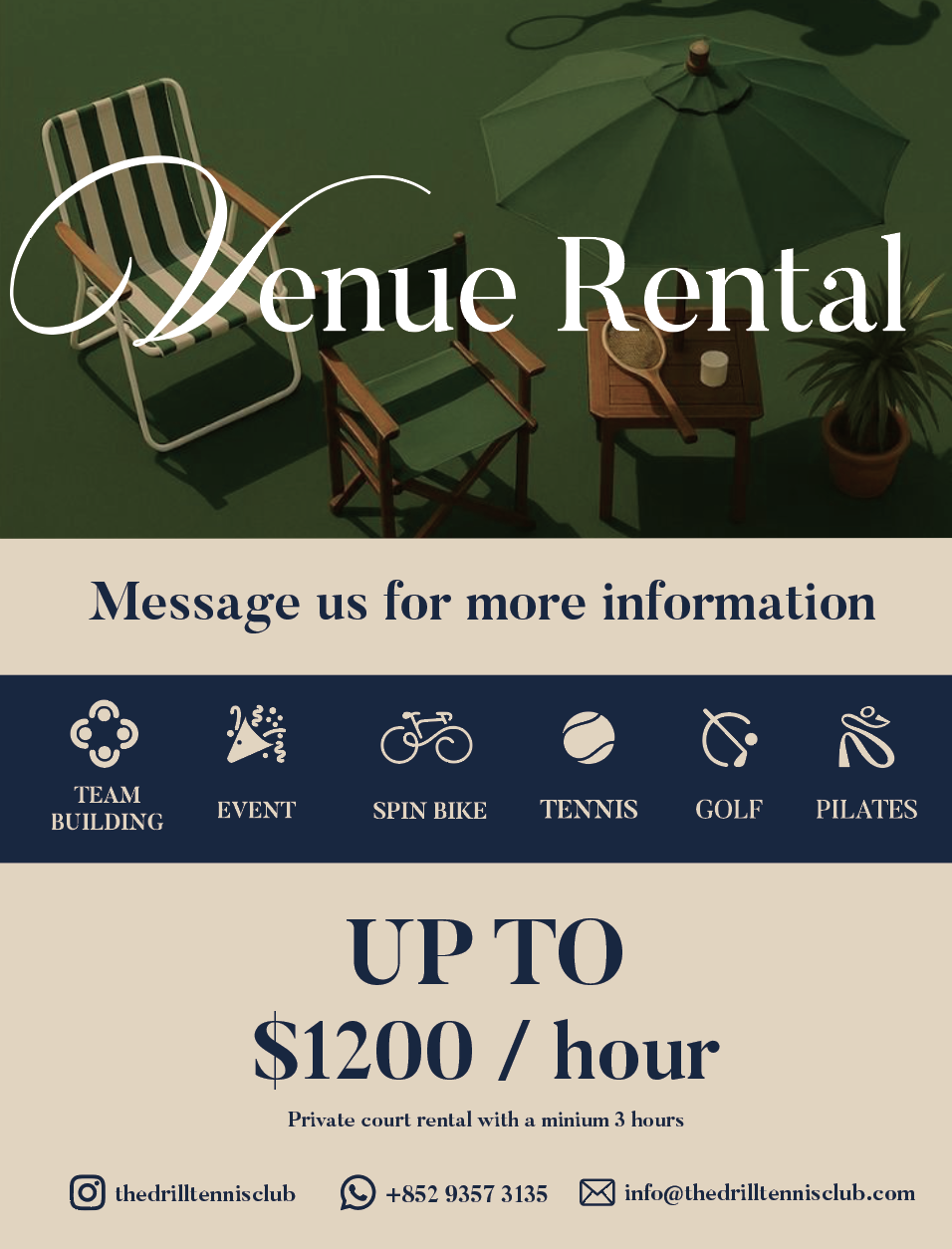 自助或私人預約THE DRILL TENNIS CLUB 提供各類型活動, 自助或教學預約,令時間更自由。